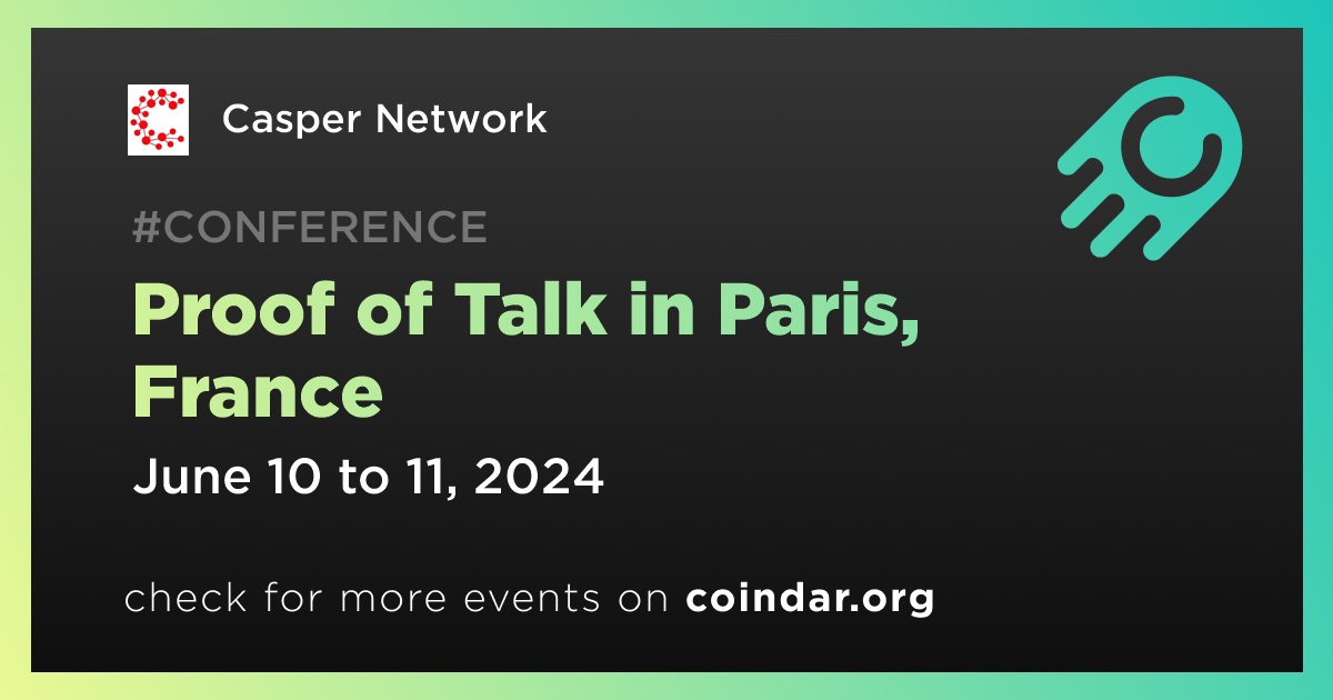 Casper Network is set to partner with Proof of Talk for its 2024 edition. The event is scheduled to take place in Paris from June 10 to June 11. Over 150 speakers are expected to participate, providing a bridge between traditional forums and the Web3 community.