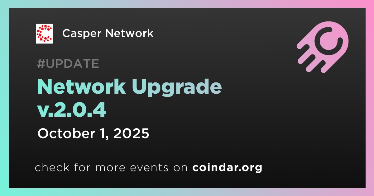 Casper Network is deploying upgrade v2.0.4 on October 1, 2025, at approximately 14:46 UTC (Era 19665). The update includes a critical security patch, bug fixes for contract versioning and bid enforcement, groundwork for a new virtual machine, and technical improvements for smoother node operation. Node runners must update their systems to Ubuntu 22.04 / 24.04 or Debian 13, as Ubuntu 20.04 will no longer be supported.
