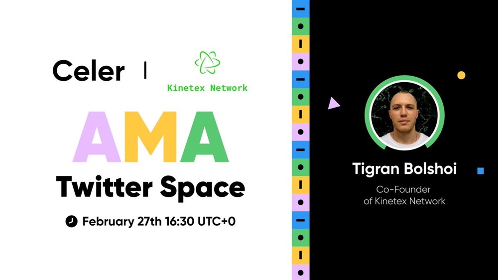 Celer Network will host an AMA on X with Kinetex Network on February 27th at 16:30 UTC. The discussion will focus on Kinetex Network’s utilization of Celer’s technology.
