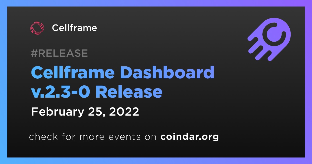 Cellframe Dashboard release v2.3-0. This update includes new features and fixes. Download the latest version on GitLab
