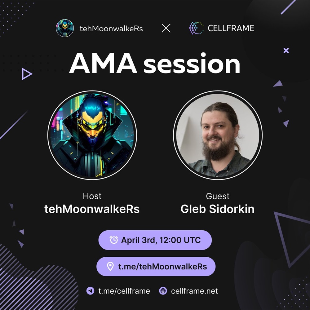 Cellframe will host an AMA on Telegram on April 3rd at 12:00 UTC. The session will feature Gleb Sidorkin from the Cellframe marketing tTeam.