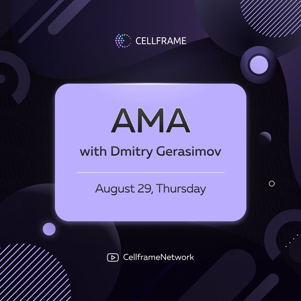 Cellframe will host an AMA on X on August 29th. The session will feature Dmitry Gerasimov, the CEO of Demlabs and project lead for Cellframe.