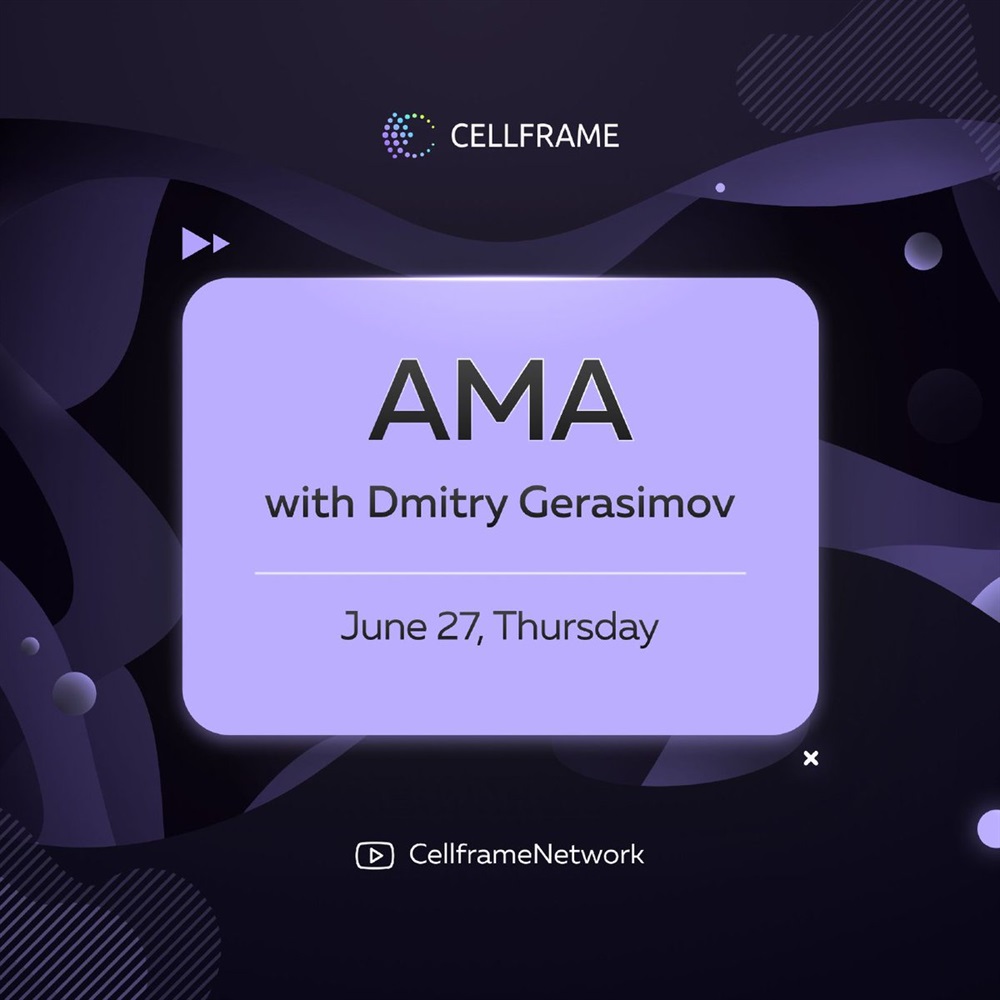 Cellframe will host an AMA on X with Dmitry Gerasimov, the CEO of Demlabs and project lead for Cellframe. The session is scheduled to take place on June 27th.