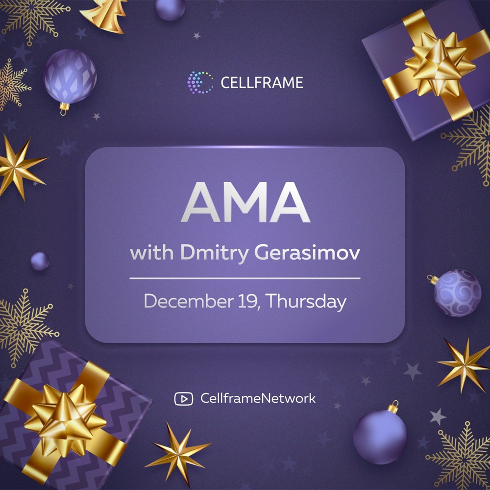 📌 this thursday, december 19, we’ll hold the final traditional AMA session of the year with Dmitry Gerasimov, CEO of Demlabs and head of the Cellframe project.