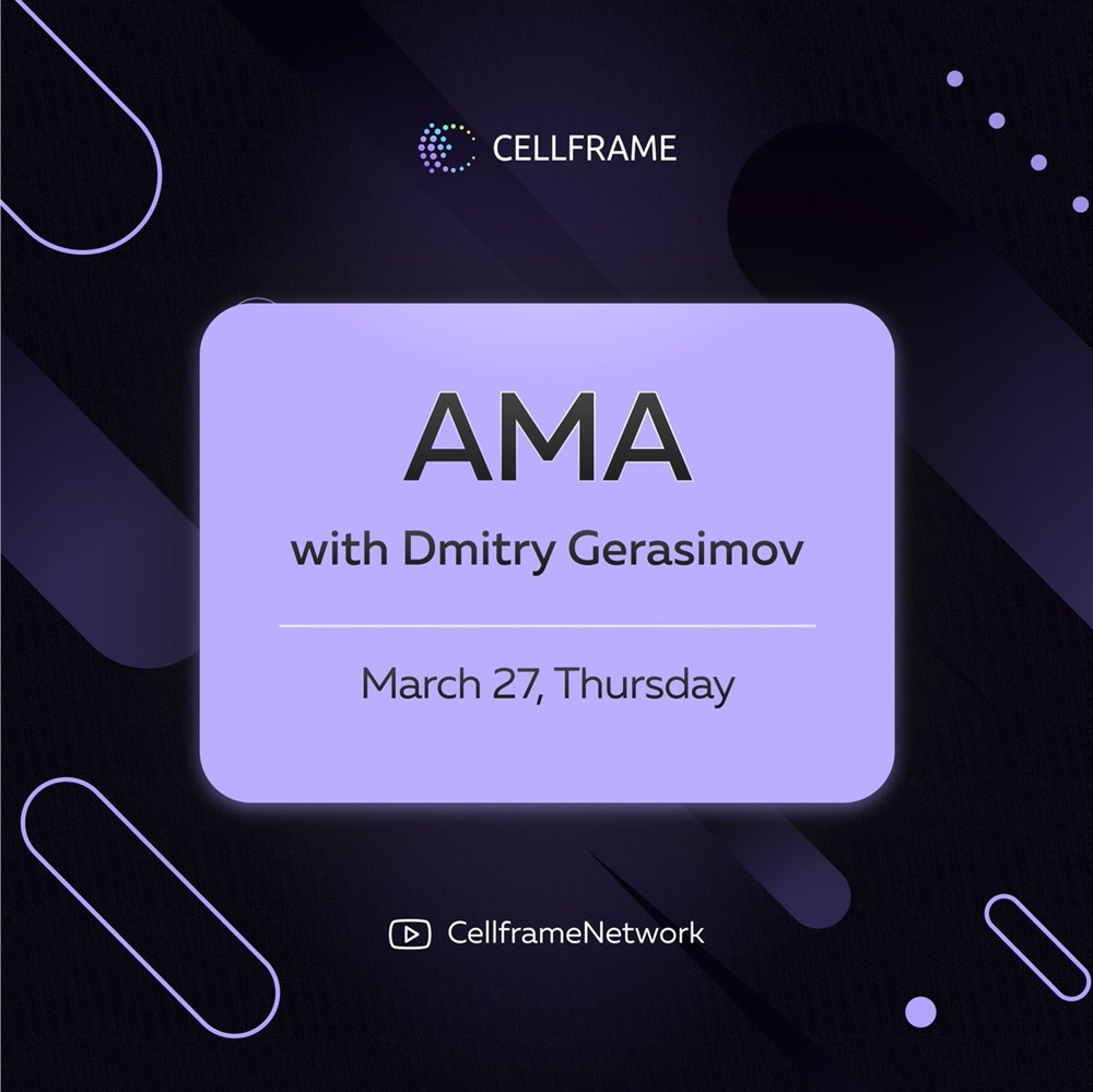 Cellframe will host an AMA on YouTube with Dmitry Gerasimov, the CEO of Demlabs and project lead for Cellframe on March 27th.