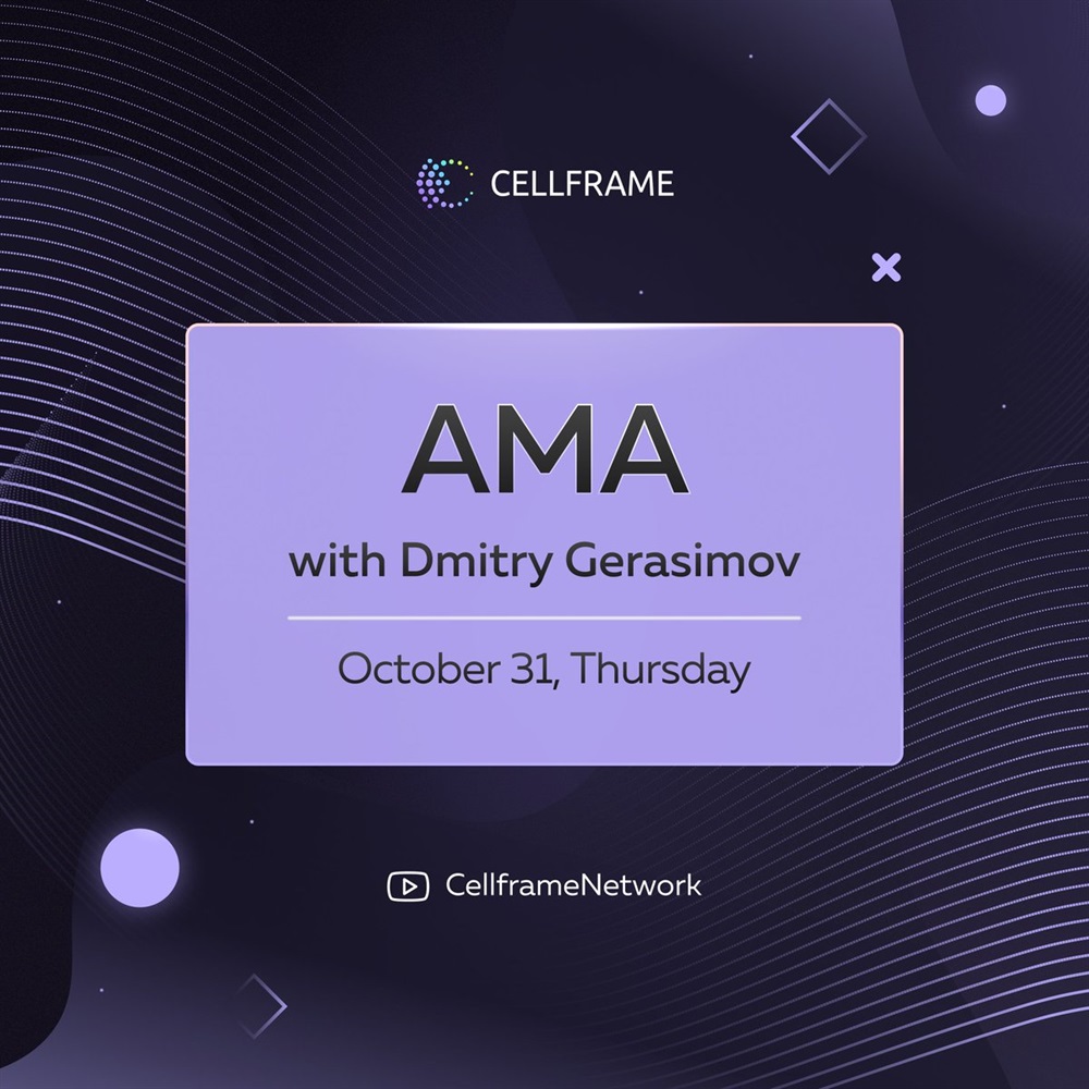 Cellframe will hold an AMA with Dmitry Gerasimov, CEO of Demlabs and Cellframe project lead, on October 31st.