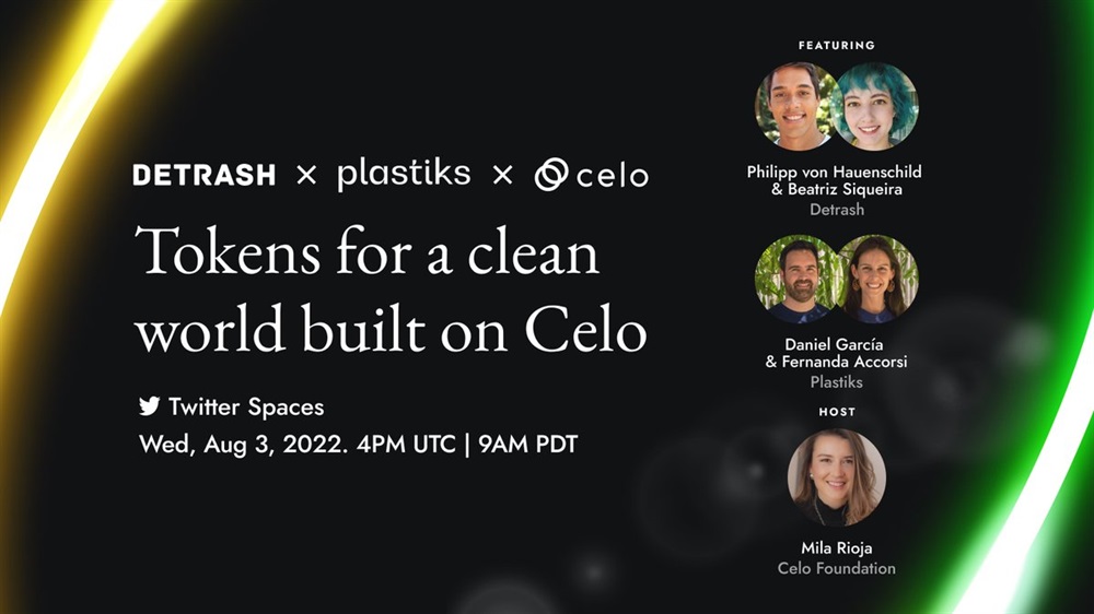 Join @detrashcrypto, @Plastiks_io, and Celo's @mila_rioja this Wednesday to ask anything about tokens for a clean world #BuiltOnCelo.