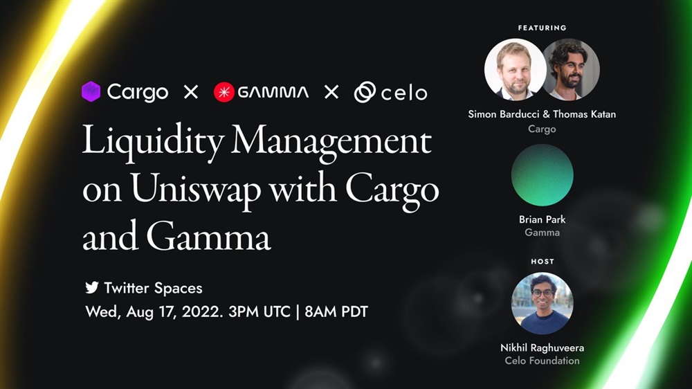 Tomorrow! You're invited to join the conversation and learn about liquidity management on @Uniswap with @cargoprotocol and @GammaStrategies.💫