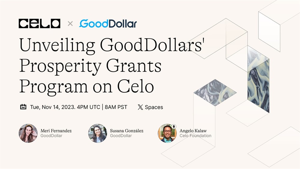 Celo will host an AMA on X with GoodDollar on November 14th at 16:00 UTC. The representatives from GoodDollar and Celo will discuss the program designed to support the upcoming generation of builders, innovators, and entrepreneurs.