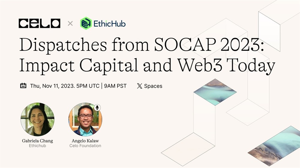 tomorrow, join EthicHub(🌱, 🌱)'s Gabriela Chang & the Celo Foundation's Angelo Paolo Kalaw as they recap & reflect on highlights from #SOCAP2023!