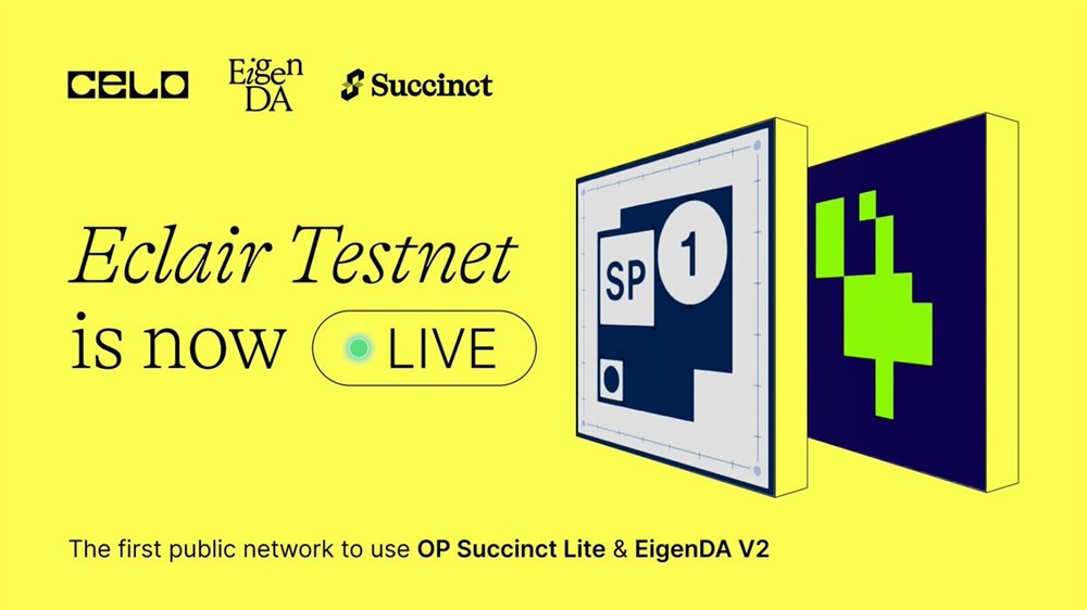Celo announces that the Eclair Testnet is now operational, marking the first public network deployment that integrates OP Succinct Lite with EigenDA v2. The release represents a further step in the project’s transition to an Ethereum Layer 2 environment.