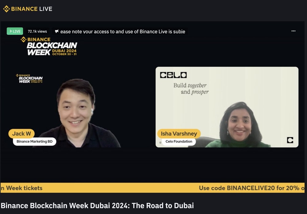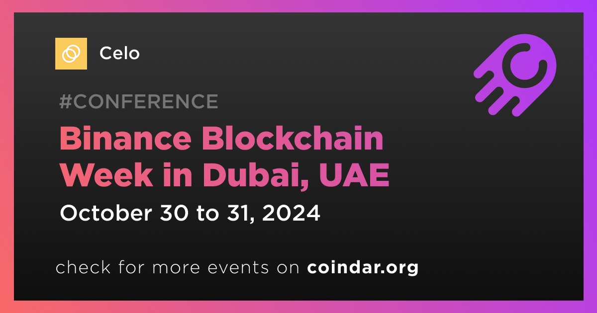 Celo will participate in Binance Blockchain Week in Dubai on October 30th-31st, focusing on its stablecoin ecosystem, fee abstraction, and the recent standalone launch of minipay.