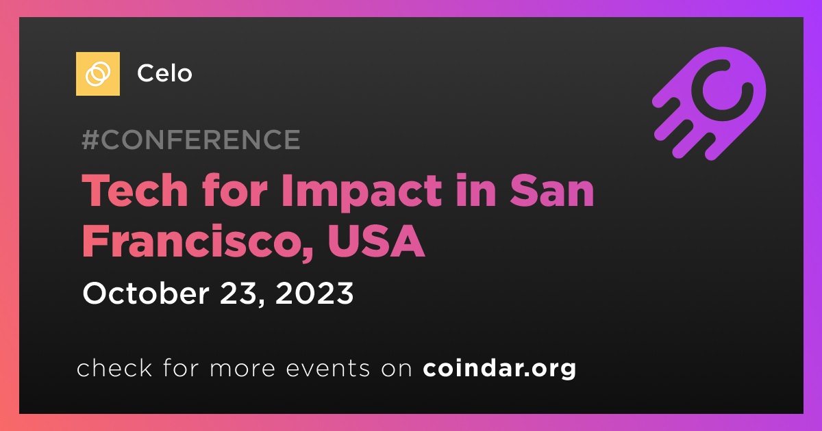 Celo is set to participate in the Tech for Impact event in San Francisco on October 23rd. The conference will focus on the use of emerging technology for social impact.