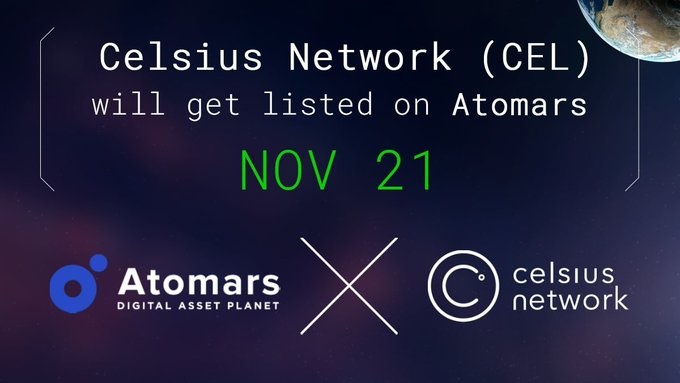 Celsius Network CEL: Listing on Atomars