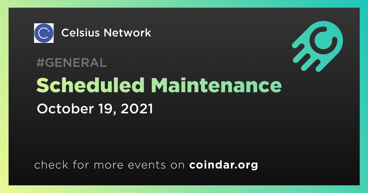 🚧 The Celsius mobile and web app will be down for scheduled maintenance Tuesday, October 19th, 2021 at 6:00 AM UTC / 2:00 AM EST. The maintenance period is expected to last up to 5 hours. 🚧