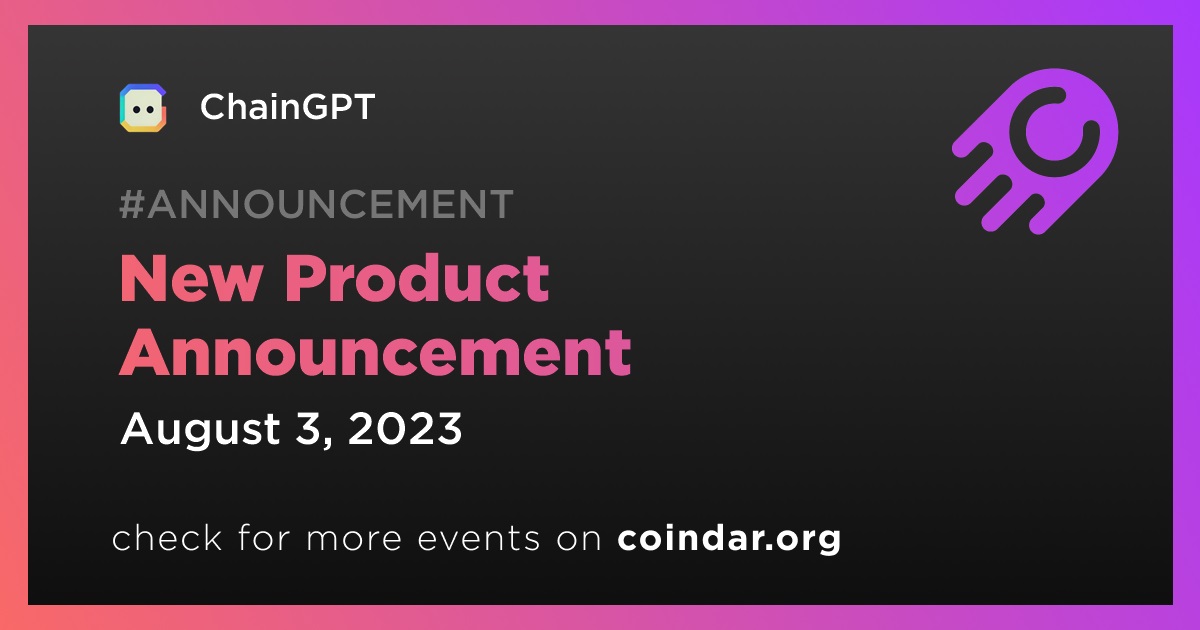 ChainGPT is set to reveal a new product on August 3. This product, which has been in development for several months, is unique to ChainGPT and is mentioned in their Whitepaper. Further details about the product remain undisclosed until the official reveal.