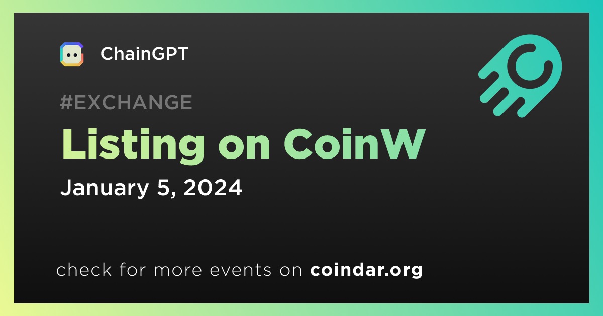 CoinW will list ChainGPT (CGPT) on January 5th.
