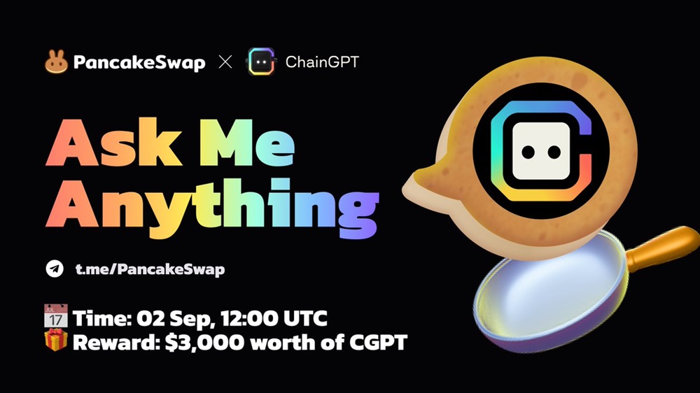 PancakeSwap will host an AMA on Telegram with ChainGPT on September 2nd at 12:00 pm UTC. During the AMA, participants will have the opportunity to win a prize of $3,000 in ChainGPT tokens.