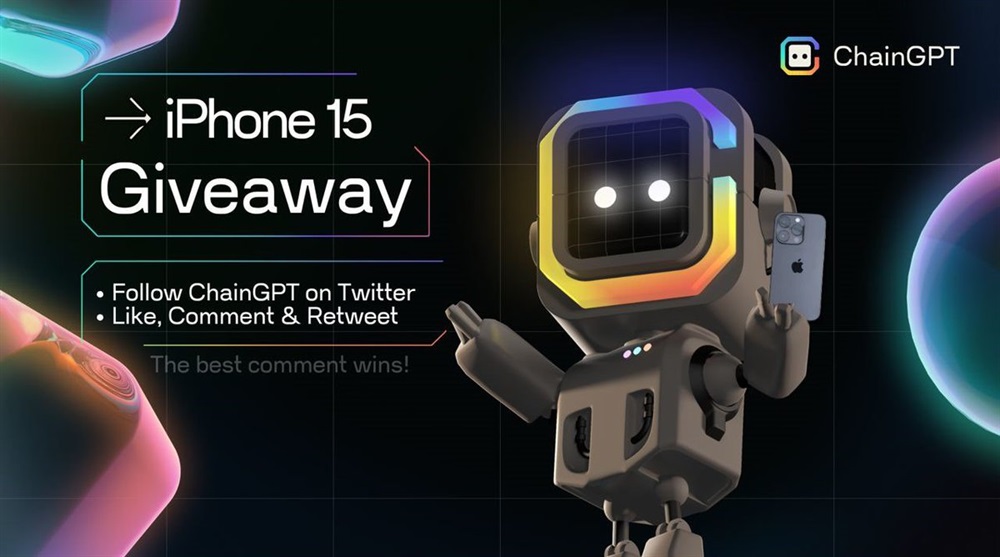 ChainGPT has announced a giveaway event, where the prize is an iPhone 15. The event started on September 12th and will conclude on September 15th. The winner will be chosen from those who engage with ChainGPT’s social media posts and share their favorite features of the platform.