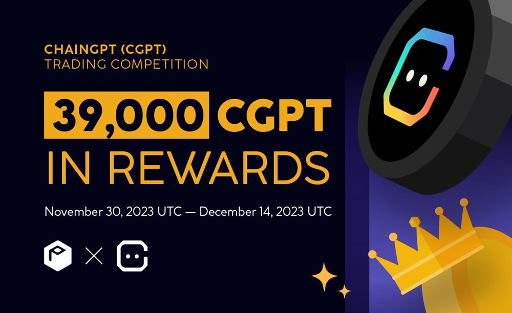 ChainGPT has started a trading competition on ProBit Global from November 30th to December 14th. A total of 39,000 CGPT, the cryptocurrency of ChainGPT, will be awarded to the top 20 traders based on their trading volume. The first, second, and third place winners will receive 2,418 CGPT, 2,369.25 CGPT, and 2,320.5 CGPT respectively.