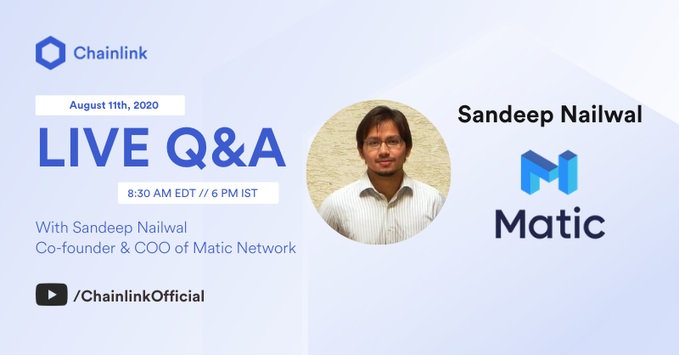 Join us tomorrow, August 11th at 8:30am EDT for a live Q&A with @sandeepnailwal of @maticnetwork on the #Chainlink Youtube: youtube.com