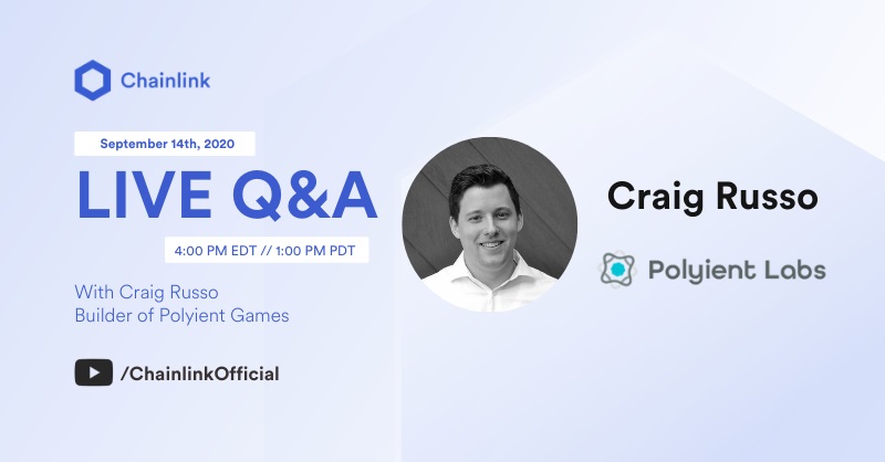 Join a live Q&A with @Ecnar_Official, builder of @PolyientGames on Sept. 14th @ 4pm EDT. Discussion will be focused on how #ChainlinkVRF is powering PGFK, a membership & rewards #NFT w/ on-chain perks for crypto collectibles. Watch on #Chainlink's YouTube: bit.ly