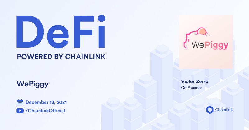 Come learn about @wepiggydotcom's DeFi platform that's #PoweredbyChainlink and live on seven different blockchains. Bring your questions about what it's like being a global multichain #DeFi protocol.