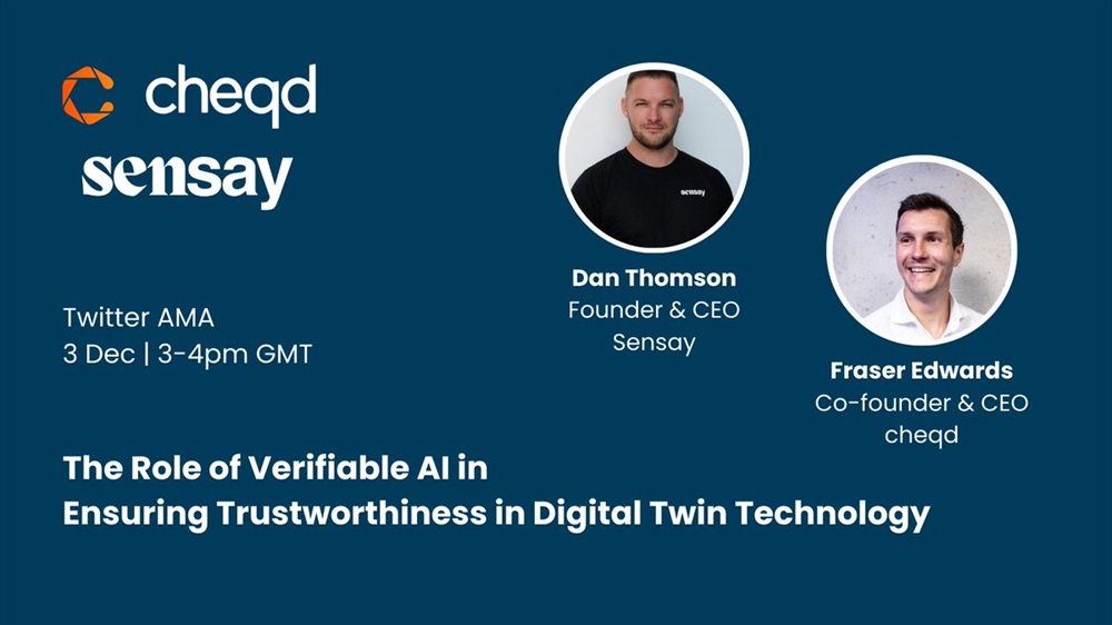 CHEQD Network is hosting an AMA on X on December 3th at 15:00 UTC, focusing on the role of Verifiable AI in transforming digital twins to extend and automate human identity and knowledge.