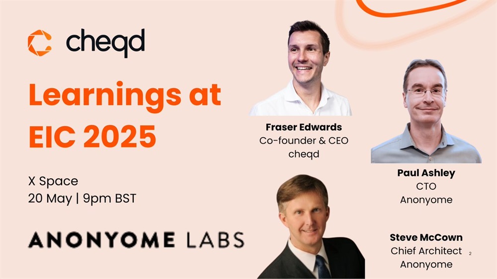 CHEQD Network and Anonyome Labs will host an AMA on X on the outcomes of the European Identity and Cloud Conference 2025. The debrief will take place on May 20th from 20:00 to 20:30 UTC.