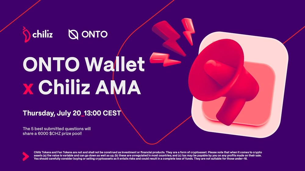 Chiliz will host an AMA on Twitter on July 20th at 11:00 UTC. The interactive event will feature the participation of ONTO Wallet representatives. Participants of the event will have the opportunity to share the prize fund of 6000 CHZ.