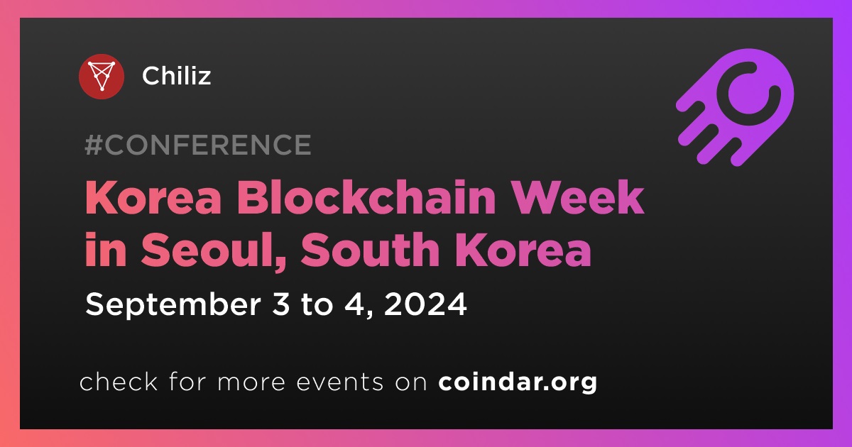 Chiliz will participate in the Korea Blockchain Week in Seoul on September 3rd-4th.