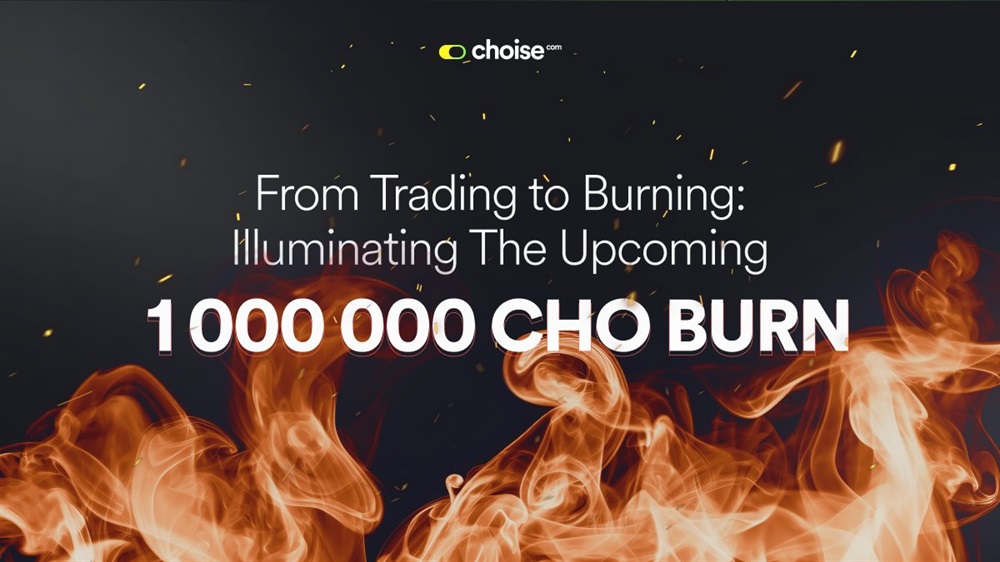 Choise is set to conduct a token burn event in September. The event will involve the burning of 1 million CHO tokens.