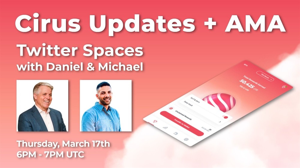 ❗ Live on #TwitterSpaces this Thursday at 6PM (UTC), we'll be answering any questions you may have on the future of #Cirus 👉 ow.ly