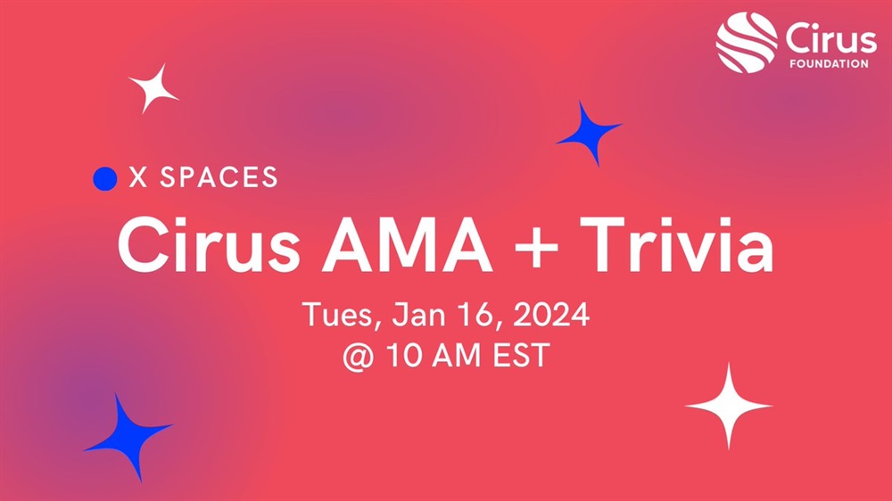 Cirus will host an AMA on X on January 16th at 15:00 UTC.