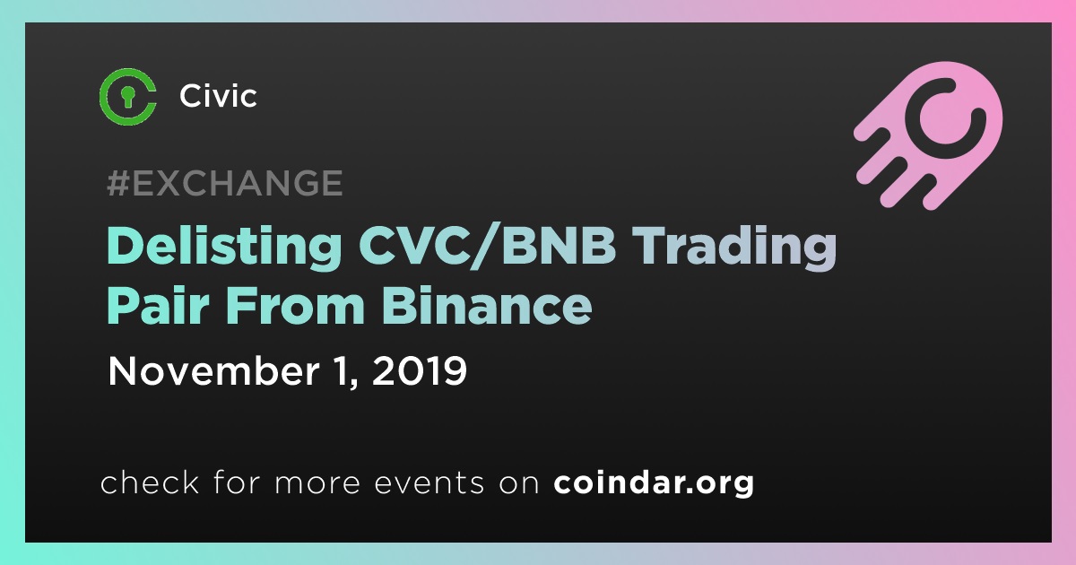 Civic CVC: Delisting CVC/BNB Trading Pair From Binance