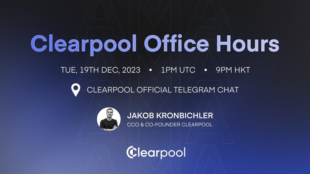 Clearpool will host an AMA on Telegram on December 19th at 1 PM UTC. The even is aimed at bringing together the Poolsider community to discuss various aspects related to Clearpool.