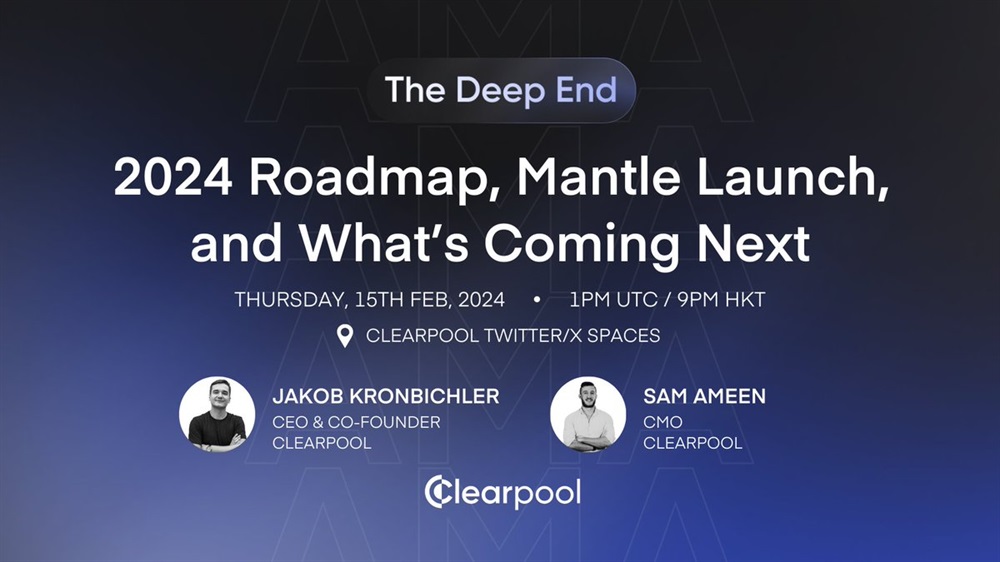 Clearpool will host an AMA on X on February 15th at 13:00 UTC. The event will feature Clearpool’s CEO and co-founder, and CMO. The discussion will revolve around the company’s 2024 roadmap and the recent launch of Mantle.