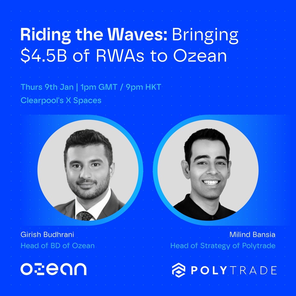 Clearpool will host a community call on January 9th, where it will delve into how Polytrade aims to introduce $4.5B of RWAs to Ozean. The collaboration between Polytrade and Ozean is poised to foster a robust ecosystem of RWA opportunities.