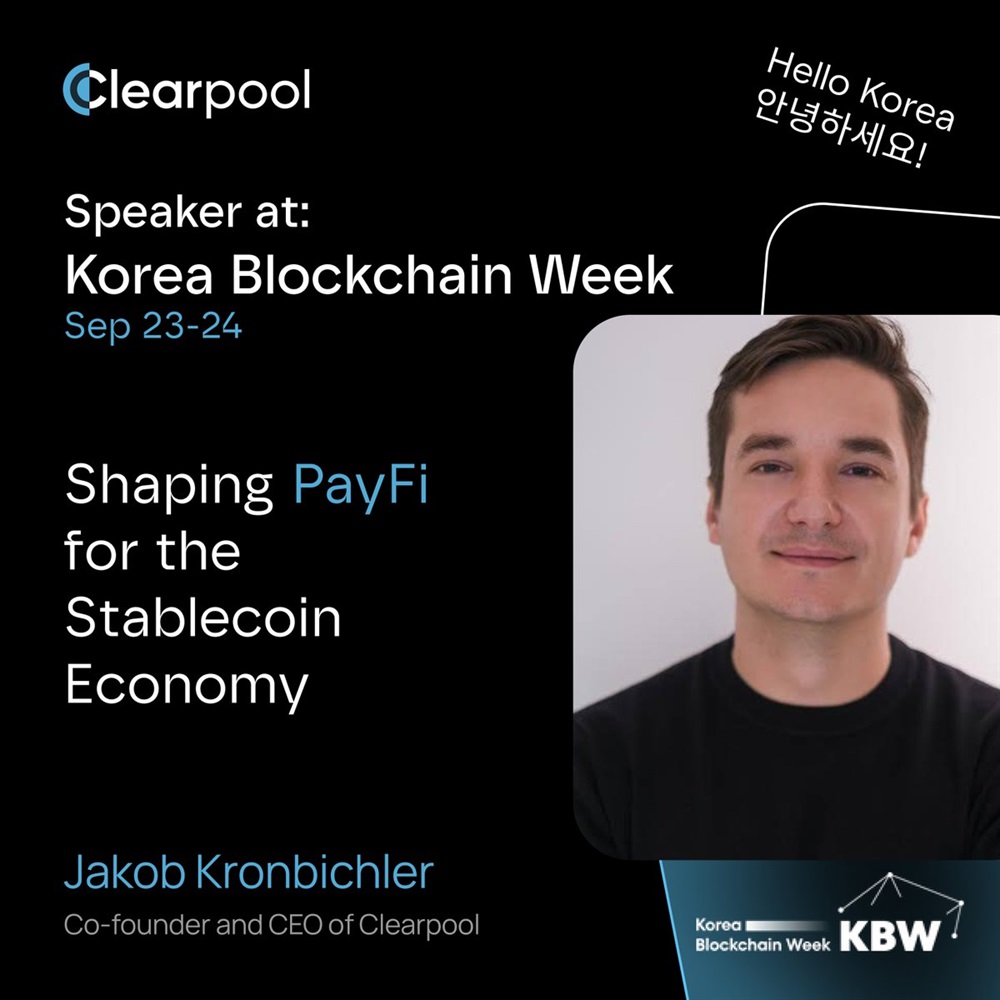 Clearpool is scheduled to participate in Korea Blockchain Week 2025, which will be held in Seoul from September 22 to 28. The company’s chief executive officer is expected to address developments in global stablecoin payments and PayFi.