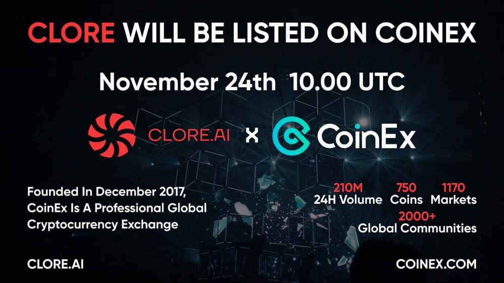 CoinEx will list Clore.ai (CLORE) on the 24th of November at 10:00 UTC.