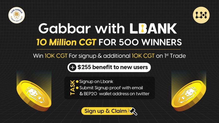 Coin Gabbar & Lbank Announces 10 Million CGT Giveaway SignUp and win 10K CGT