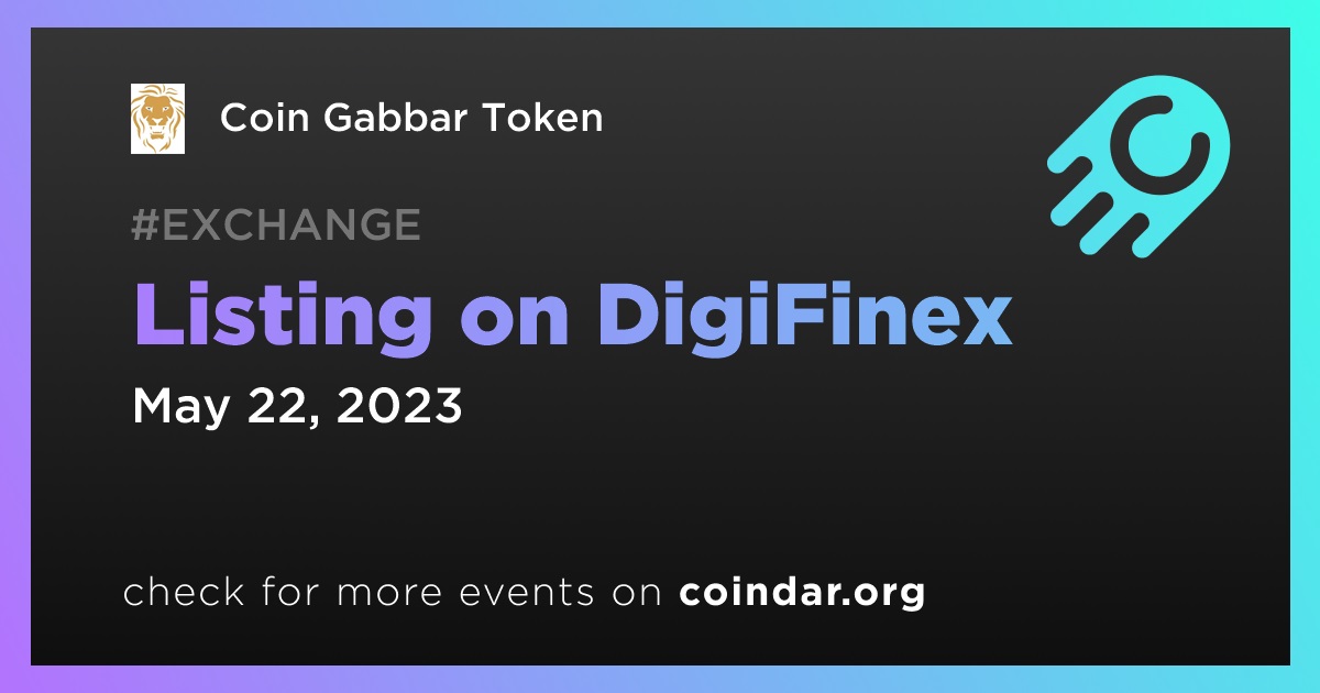 DigiFinex lists Coin Gabbar Token with CGT/USDT pair on 22th May at 9:00 (UTC).