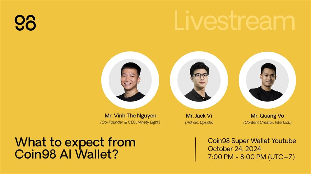 The session will feature Vinh The Nguyen, co-founder and CEO of Ninety Eight, discussing insights about the upcoming Coin98 AI Wallet.
