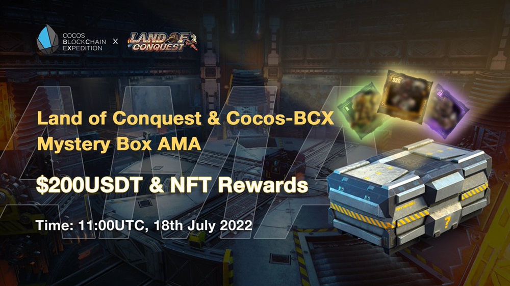 🗣 @LandofConquest Mystery Box NFT #AMA is landing #CocosBCX community on 7/18! Ask them anything, leave your questions in the comment. Lovely rewards are ready for lucky you!💫