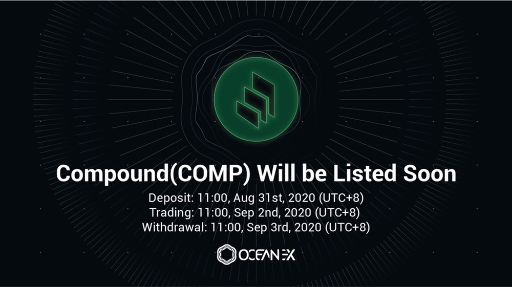📢#OceanEx is going to list $COMP soon. @compoundfinance is an algorithmic, autonomous interest-rate protocol on the #Ethereum blockchain. #COMP trading will be opened at 11:00, Sep 2, 2020 (UTC+8).