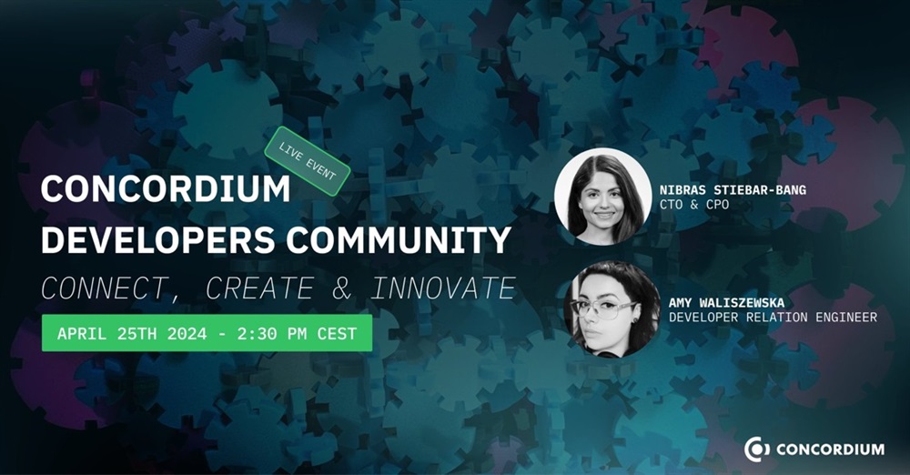 🌟 Join us for the Concordium Developers Community event! 🚀 Connect, create, and innovate with Nibras Stiebar-Bang & Amy Waliszewska 🥑 DevAd . Dive into the future of blockchain tech and see how you can lead. 🛠️