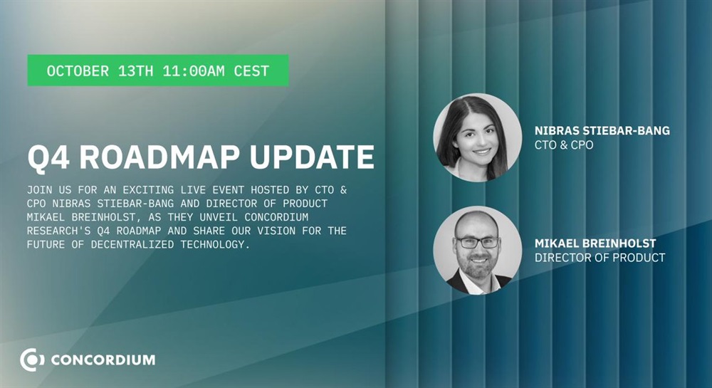 Join us for an exciting Live event hosted by CTO & CPO Nibras Stiebar-Bang and Director of Product Mikael Breinholst, as they unveil Concordium Research's Q4 roadmap and share our vision for the future of decentralized technology.