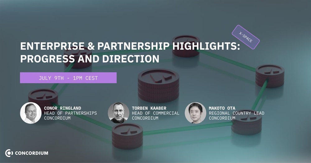 Concordium will host an AMA on X on July 9th at 11:00 AM UTC. The focus of the session will be on enterprise and partnership highlights.