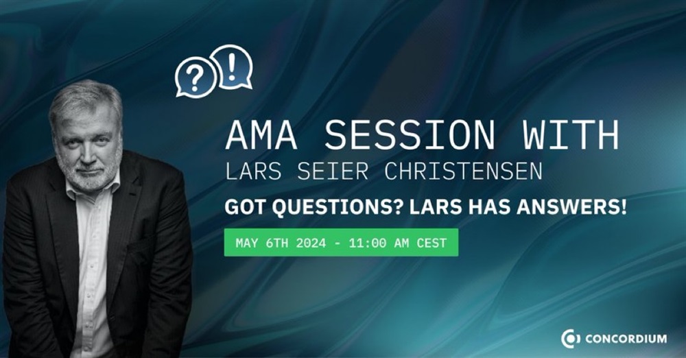 Concordium will host an AMA on X with the founder Lars Seier Christensen on May 6th at 9:00 UTC.