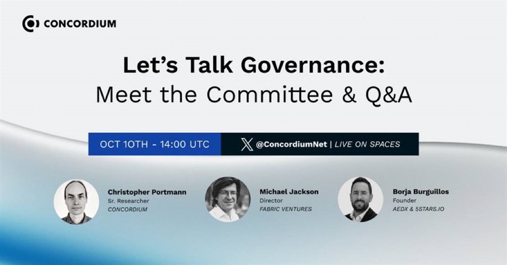 Concordium will hold an AMA on X on governance mechanisms on October 10th at 14:00 UTC.